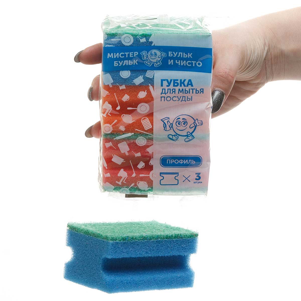 Губка для посуды Мистер Бульк Профи 3шт МБ 112
